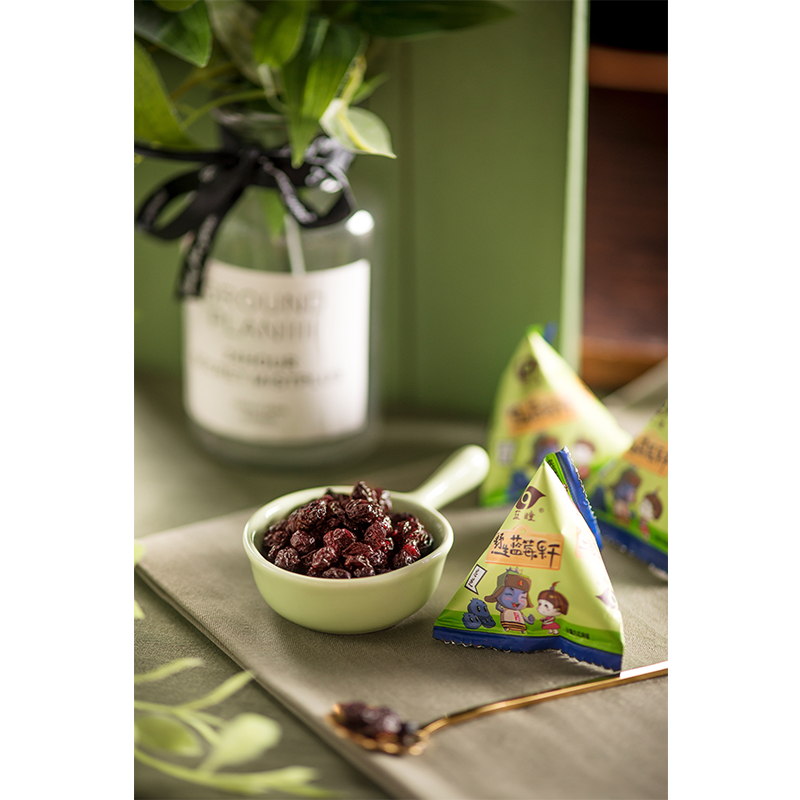 忠芝集團深耕藍莓產(chǎn)業(yè)十六年,旗下藍瞳藍莓果干作為復(fù)購率較高的產(chǎn)品,需要經(jīng)過復(fù)雜的清洗、腌漬、菌群檢驗、口感穩(wěn)定、烘干、晾曬、高溫消毒等工藝步驟,孕婦、老人、小孩都可以放心食用。這一小袋248g包裝的產(chǎn)品,約有1200顆藍莓果,都是用獨立三角包包裝,方便攜帶。